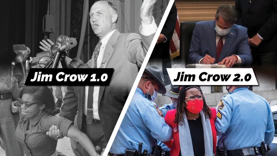 After decades of fighting for fair voting processes, under a painting of a Georgia slave plantation, an all-White male caucus stood to watch Governor Brian Kemp sign a bill that can push the fight back decades.