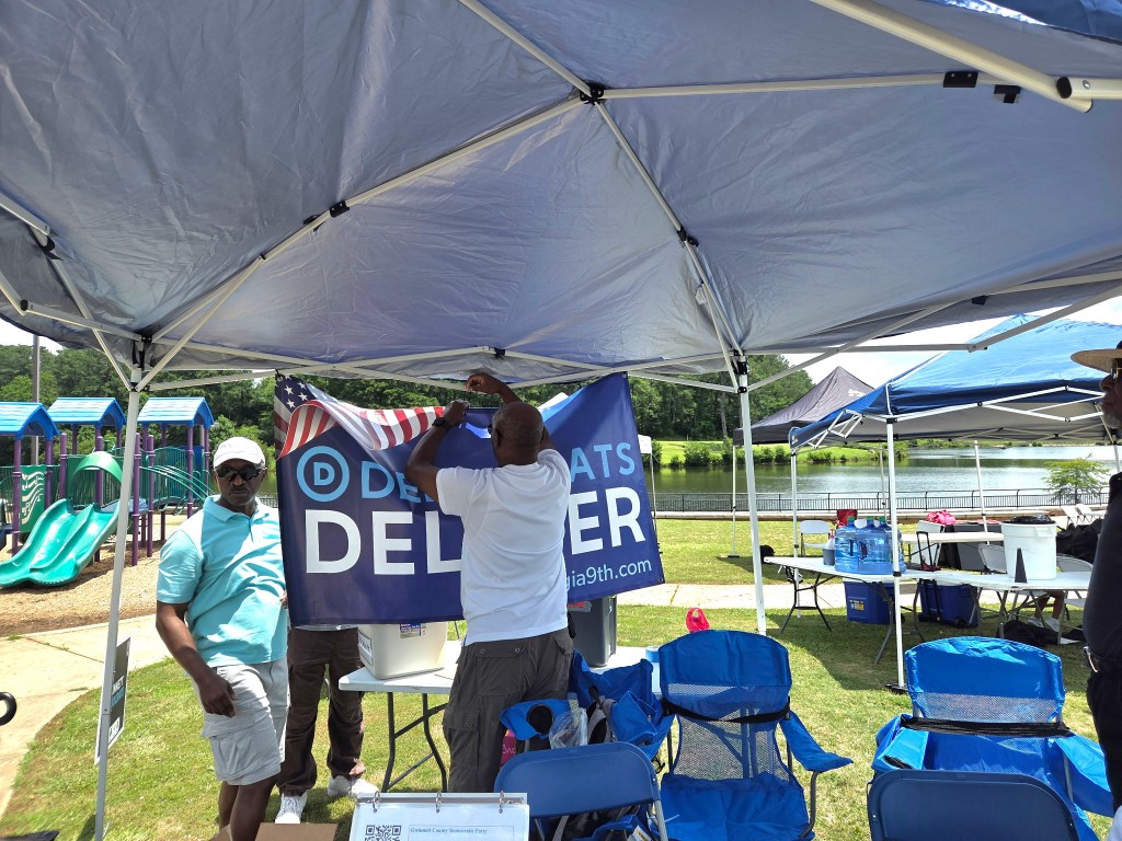 We had a great time at the Juneteenth Celebration with the Gwinnett County Democratic Party booth in Lawrenceville . The celebration was sponsored by the United Ebony Society of Gwinnett.